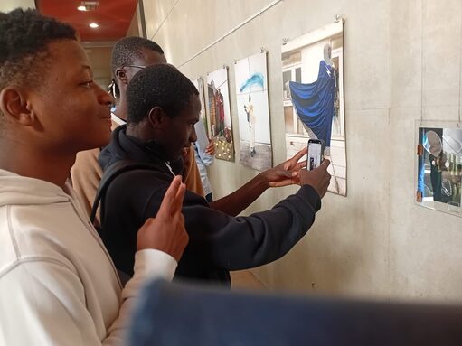 Jeudi dernier a eu lieu au lycée le vernissage de l'exposition "(Se) raconter" en présence de l'artiste Marielle Rossignol, des élèves et professeurs impliqués dans le projet (Mme Kundid, Grilhot, Renault, Andraud), ainsi que de plusieurs classes invitées et personnels du lycée. Pas moins d'une centaine de personnes ont pu assister à la présentation du travail effectué en 2024.2025 auprès de 2 classes de CAP, les C1Avmet et C1Mis2. Les deux ateliers de création financés par le Pass Culture ont permis d'aborder avec les élèves la photographie, les différents cadrages, les techniques de mise en scène, de portraits et d'autoportraits. Tandis que les C1MIS2 ont imaginé et mis en scène des personnages de contes, les C1Avmet ont travaillé l'autoportrait à travers des jeux de miroirs et de cadavres-exquis. Une partie des ateliers a eu lieu dans les ateliers de menuiserie alu-verre et plomberie.